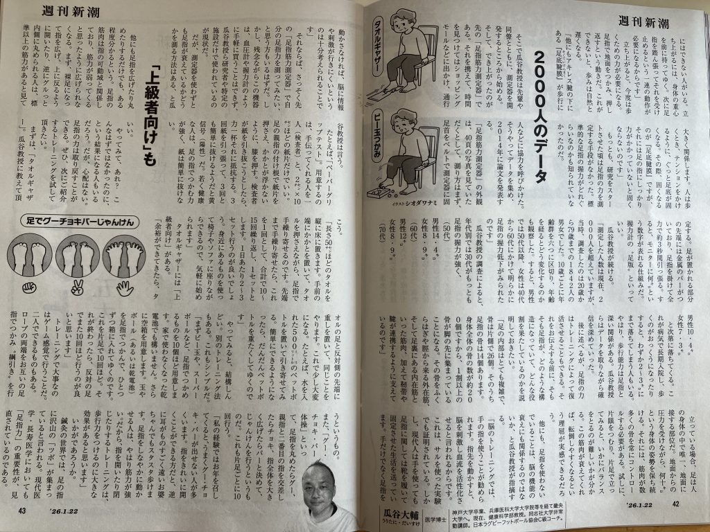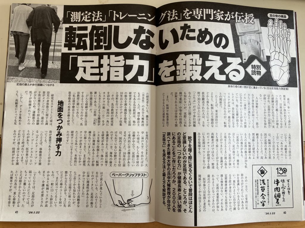 1月15日発売の「週刊新潮」に足趾の力をテーマに取材していただいた記事が掲載されました!